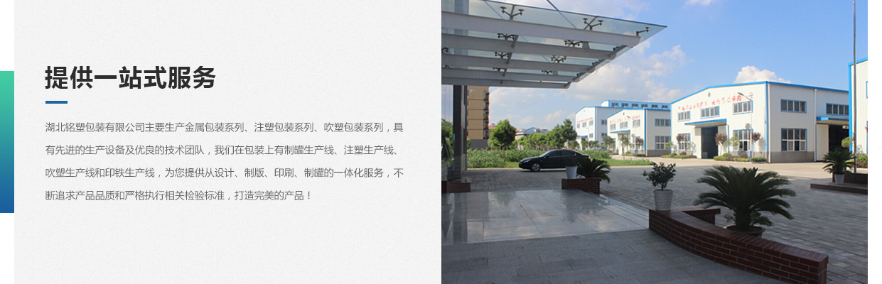 湖北銘塑包裝有限公司一家集研發(fā)、生產(chǎn)、銷售于一體的較優(yōu)秀民營企業(yè),技術(shù)力量雄厚,產(chǎn)品質(zhì)量可靠。位于交通暢順,百業(yè)興旺、經(jīng)濟富裕、政策開放的孝感開發(fā)區(qū)域。我們企業(yè)的營銷戰(zhàn)略是以建筑為土壤,以產(chǎn)品為種子,以質(zhì)量為肥料,讓綠色鋪滿全球。憑借多年來的行業(yè)經(jīng)驗,公司不斷進行創(chuàng)新和研發(fā),為市場提供更廣泛的產(chǎn)品應(yīng)用領(lǐng)域和更好環(huán)保節(jié)能產(chǎn)品,為國家能源環(huán)保戰(zhàn)略和可持續(xù)發(fā)展戰(zhàn)略作出應(yīng)有的貢獻。 湖北銘塑包裝有限公司主要生產(chǎn)金屬包裝系列、注塑包裝系列、吹塑包裝系列,具有先進的生產(chǎn)設(shè)備及優(yōu)良的技術(shù)團隊,我們在包裝上有制罐生產(chǎn)線、注塑生產(chǎn)線、吹塑生產(chǎn)線和印鐵生產(chǎn)線,為您提供從設(shè)計、制版、印刷、制罐的一體化服務(wù),不斷追求產(chǎn)品品質(zhì)和嚴(yán)格執(zhí)行相關(guān)檢驗標(biāo)準(zhǔn),打造更好的產(chǎn)品!